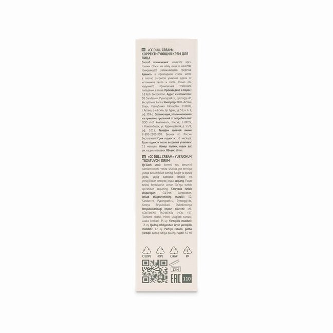 Содержит фиолетовый пигмент, который подстраивается под тон вашей кожи, выравнивает, убирает тусклость и маскирует мелкие несовершенства. Придает коже восхитительное сияние и гладкость. В составе крема центелла азиатская, известная своим благотворным воздействием на кожу: разглаживает и глубоко увлажняет, предотвращает появление первых признаков старения.