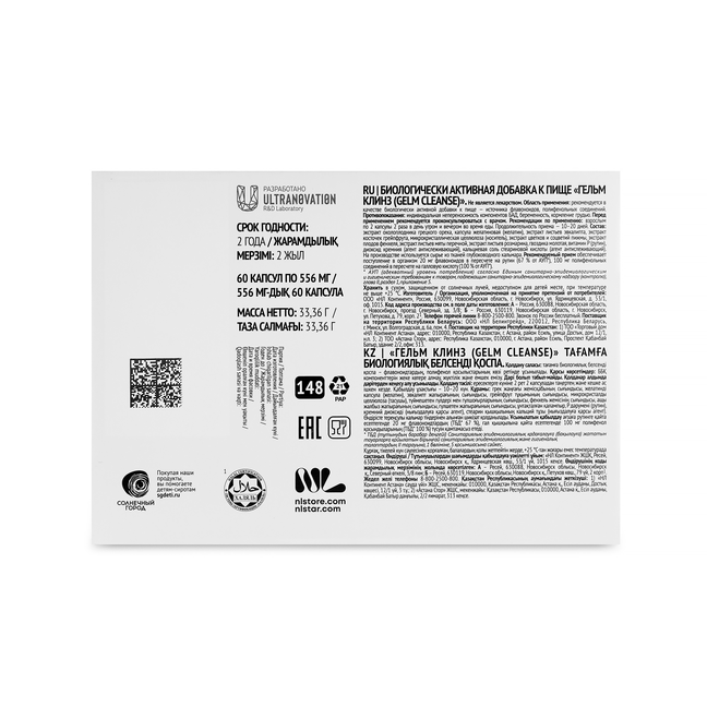 В состав Gelm Cleanse входят 2 комплекса направленного действия против большинства известных паразитов.