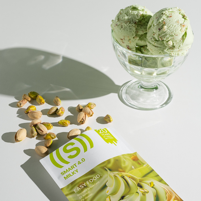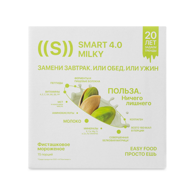 В составе коктейля ED Smart Milky «Фисташковое мороженое» уже есть молоко. Удобный формат to go: полноценный прием пищи всегда под рукой в нужный момент.