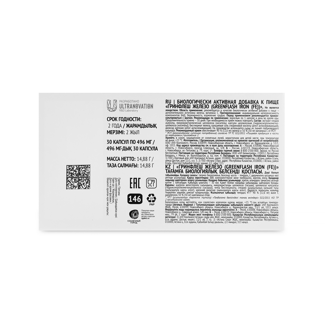Одна капсула Greenflash Iron способна закрыть суточную потребность в данном элементе.