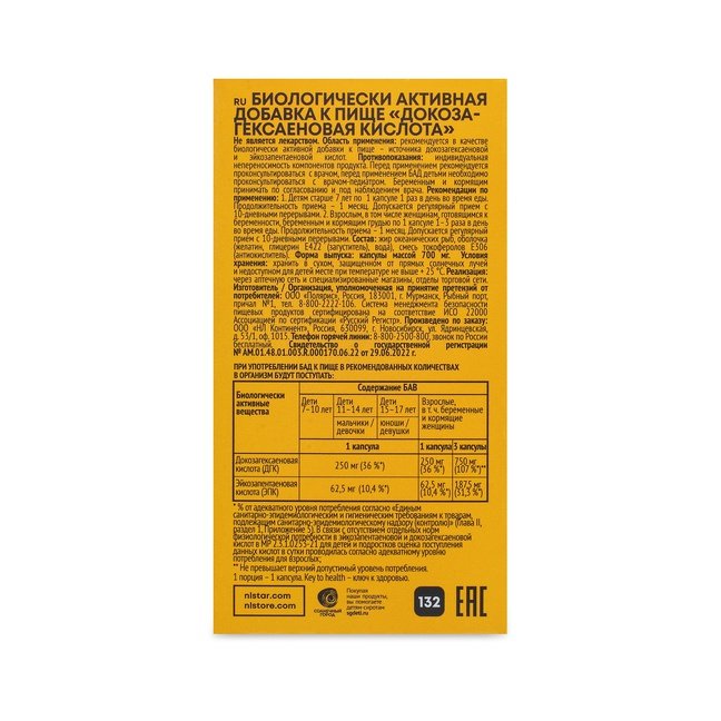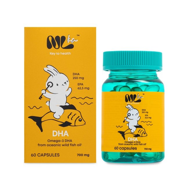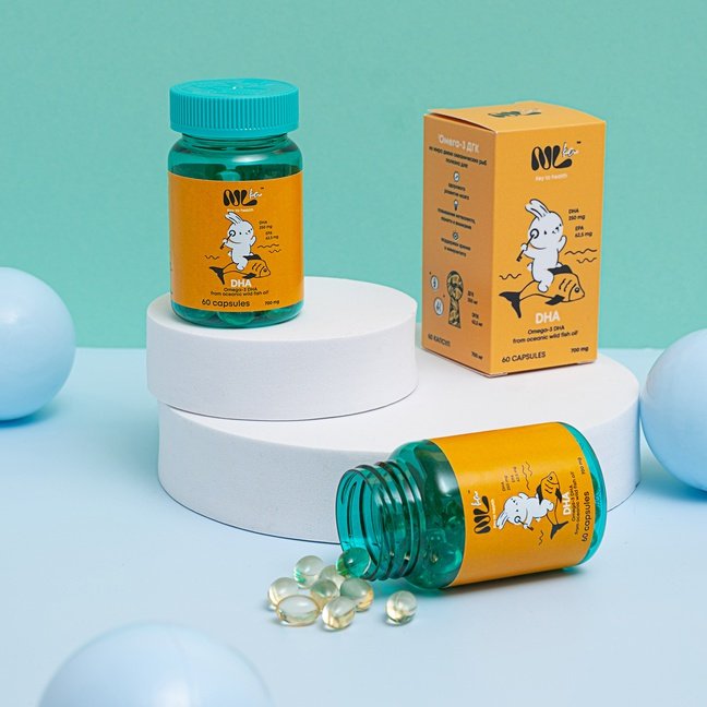 ДГК, или докозагексаеновая кислота из жира диких океанических рыб — незаменимая полиненасыщенная жирная кислота Омега-3, способствует развитию нервной системы, мозга и зрения у детей.