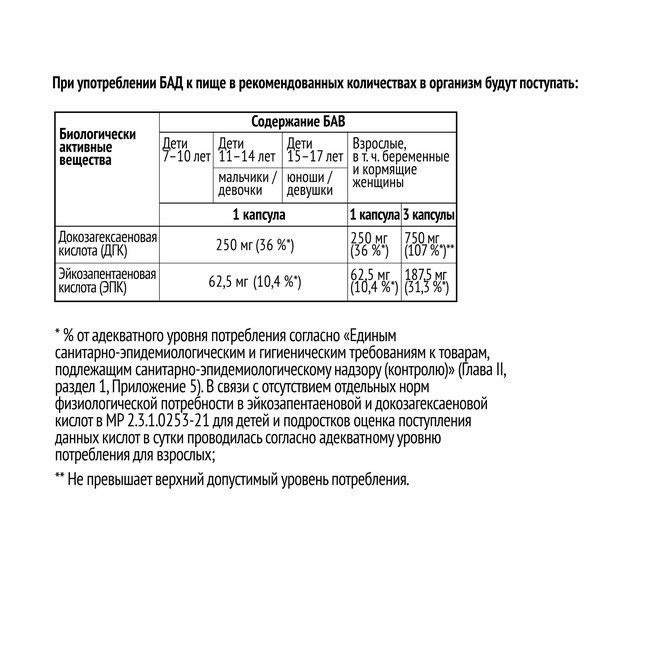 Именно поэтому в каждой капсуле Omega-3 DHA содержится высокая концентрация ДГК — 250 мг в 1 капсуле.